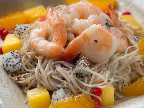 An exceptionally light and refreshing Japanese dish, perfect for warmer days or as a palate cleanser. Chilled soba noodles are expertly tossed with plump, juicy prawns and finished with a zesty, aromatic yuzu dressing for a bright burst of citrus flavor.
