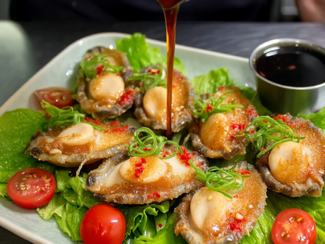 一款真正奢華且充滿異國情調的開胃菜,承諾帶來美食體驗。鮮嫩的鮑魚片經過精緻的燜煮至完美,融入了傳統泰國香料(如香茅和高良薑)的精緻芳香混合,每一口都帶來優雅的滋味和香氣的爆發。